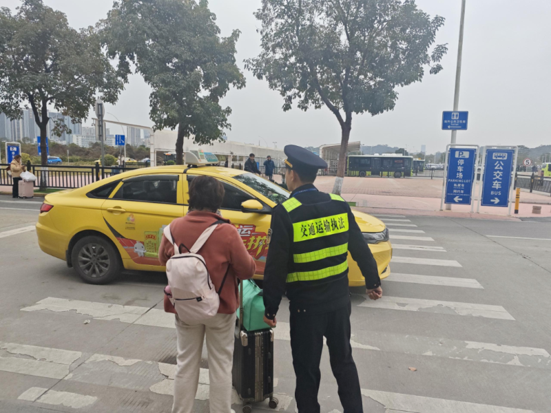 行动期间,市交通运输局联合属地部门依法惩戒长期在站场周边从事网约车违规“地推”人员,查处多起巡游出租车违规案件,并积极开展旅客出行引导与帮扶服务。1月21日上午,执勤人员在站内遇旅客突发疾病,立即协调开通出租车通道,协助车站工作人员和医护人员将患者及时送医,直至其情况稳定。同行旅客对执法人员的及时帮助表示感谢。 行动以来,局分管领导多次带队至中山站实地检查,要求全体执勤人员发扬交通执法优良作风,以高度责任感守护旅客平安出行,在执法中体现力度与温度,全力护航平安、便捷、温馨出行。